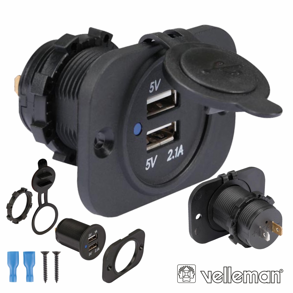 Tomada USB Dupla De Embutir 12-24Vdc P/ 5vdc VELLEMAN